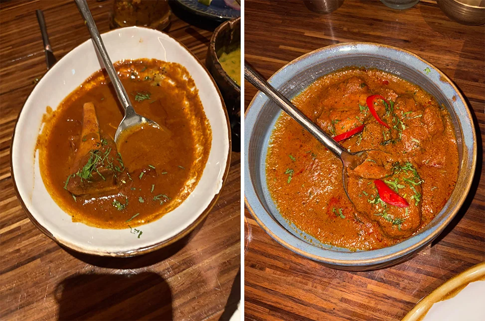 Our experience begins with the Kachori Chaat, a miniature marvel: crisp, golden kachoris filled with spiced arhar and moong dal, topped with tangy anardana and saunth chutney. Each bite is an intricate interplay of textures and flavours crunchy, soft, sweet, and tart a prelude that primes the palate for the courses to follow. The Bhunnu Murgh, tender chicken slow-cooked in a rich masala, is served with warm khamiri roti, allowing the soft bread to soak up the deep, spiced aromas. Its smoky undertones, subtle yet persistent, speak of Chef Sandeep’s expertise with traditional cooking techniques.