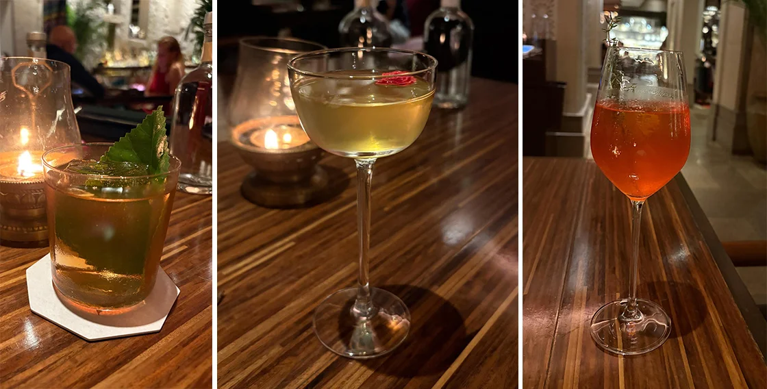 The Faluda layers Rose Rabri in a chocolate dome, chia seeds, vermicelli, and a thinck disc of kulfi,a fitting finale to the meal. Cocktails at Loya are theatre in glass form. The Strawberry, a fruity and sweet reinterpretation of the Aperol Spritz, sparkles with effervescence and bright, sunny notes. The Whiskey Paan takes the whiskey sour to another plane infused with paan and finished with a swirl of smoky whiskey, aromatic and herbaceous.